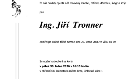 Vážení členové, bohužel Vám po týdnu přinášíme další smutnou zprávu. Ve věku 81 let nás navždy opustil náš dlouholetý člen a vášnivý golfista pan Ing. Jiří Tronner, který byl součástí našeho klubu již od osmdesátých let. Hezkou hru v golfovém nebi.